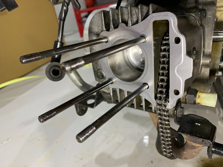 ヘッドカバーを付けて腰上は完了!ここのボルトが折れやすいのは有名ですね。