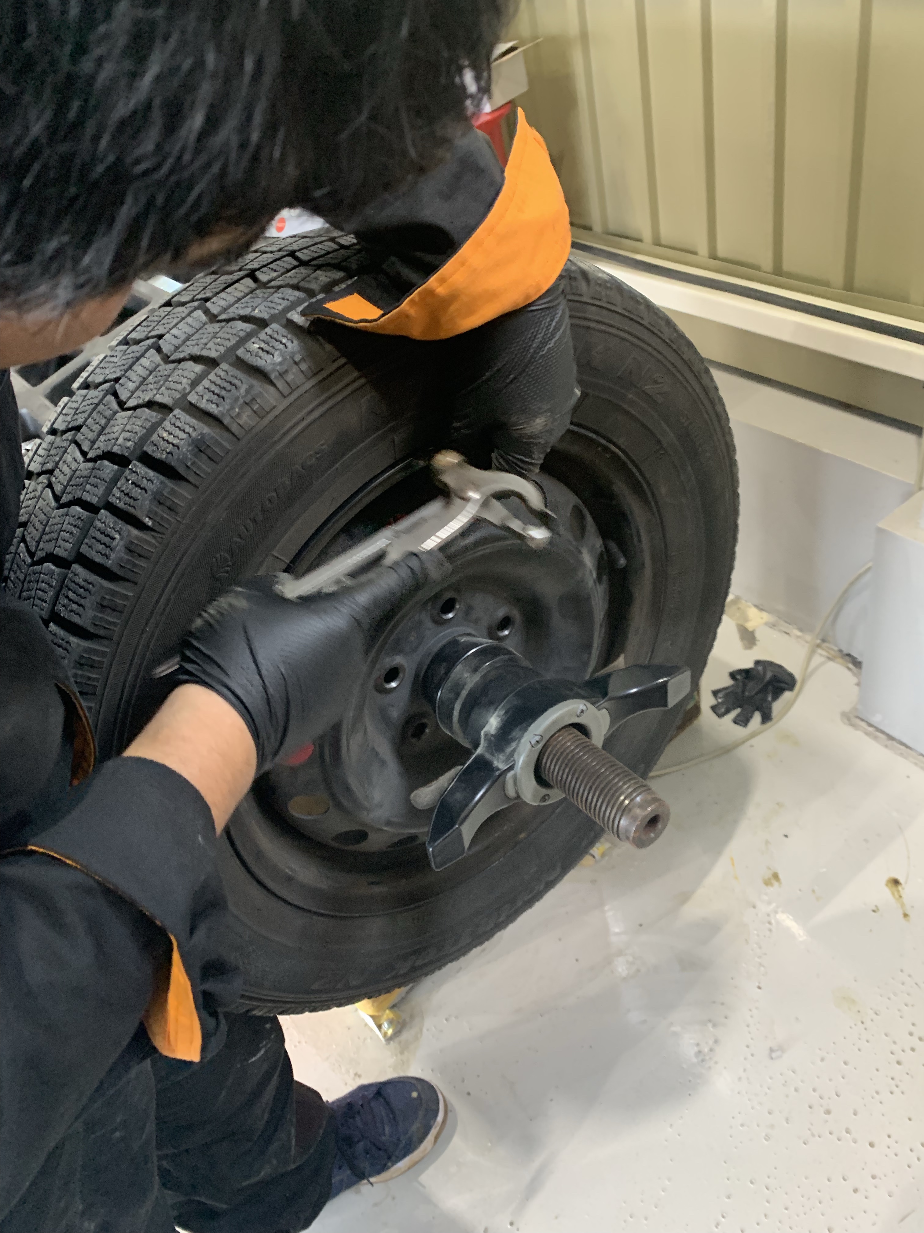 さて本日はスタッドレスタイヤのバランス調整がご要望のお客様がご来店です。