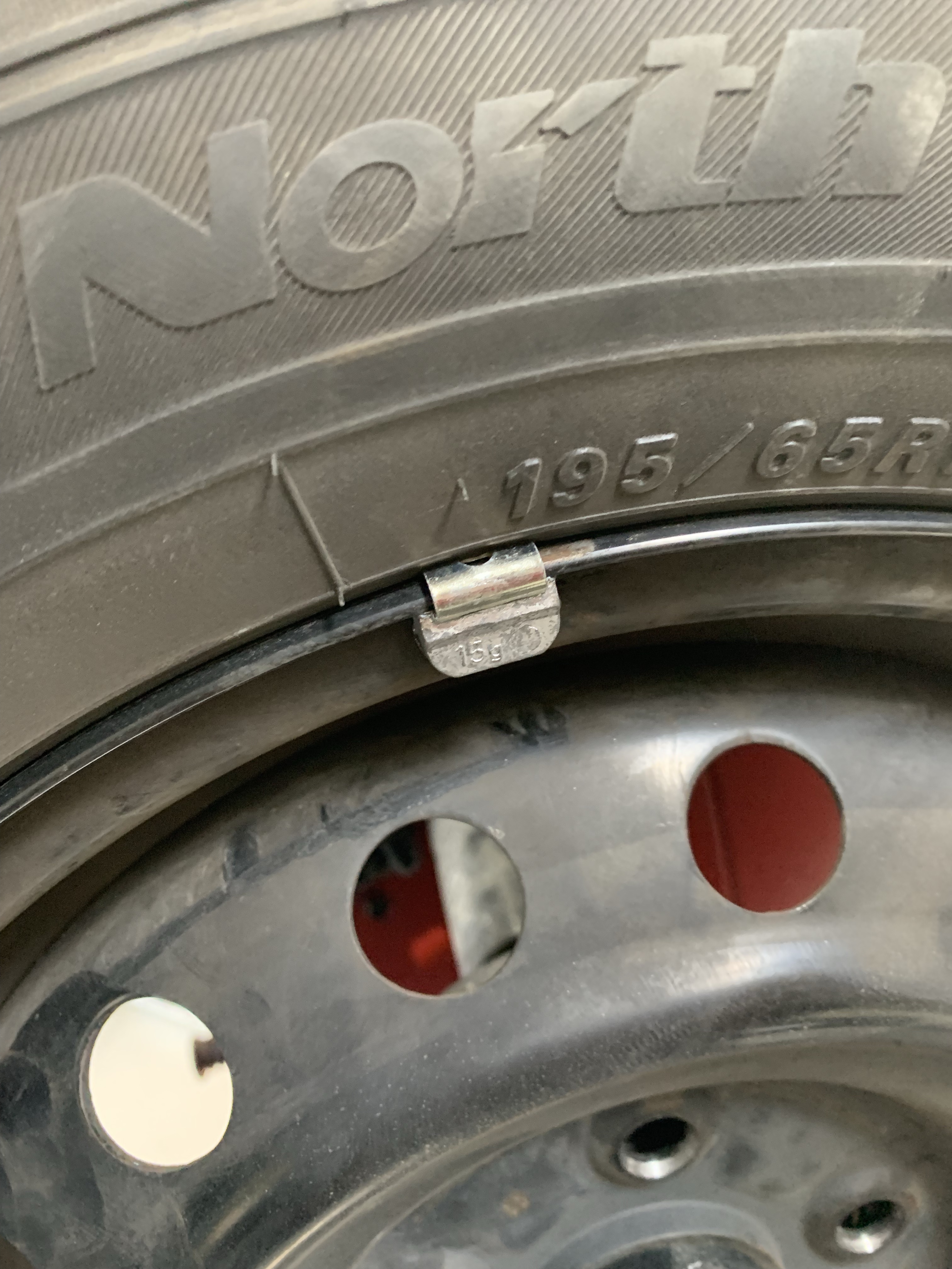 このタイヤホイールの場合は内側に15g外側に30gのウエイトを付けるとバランスが取れるようです。