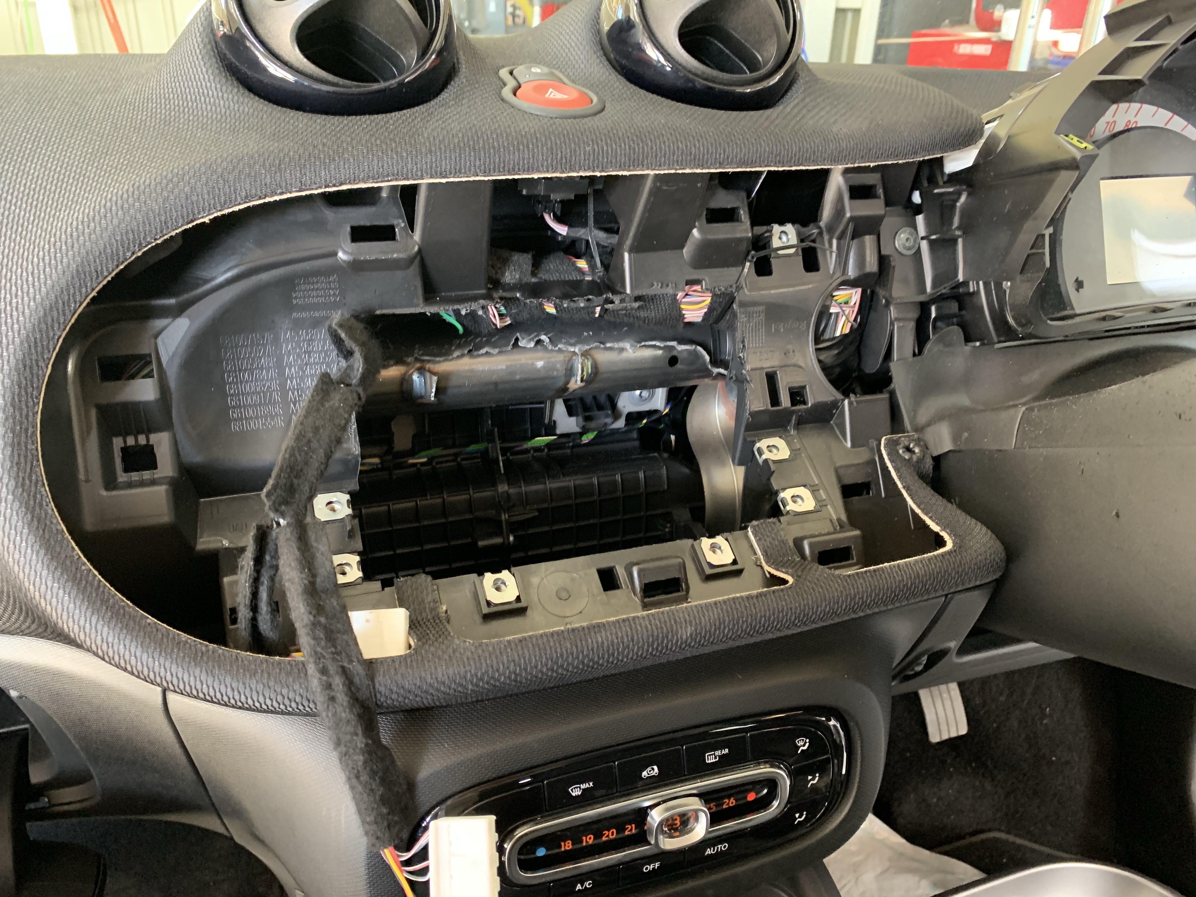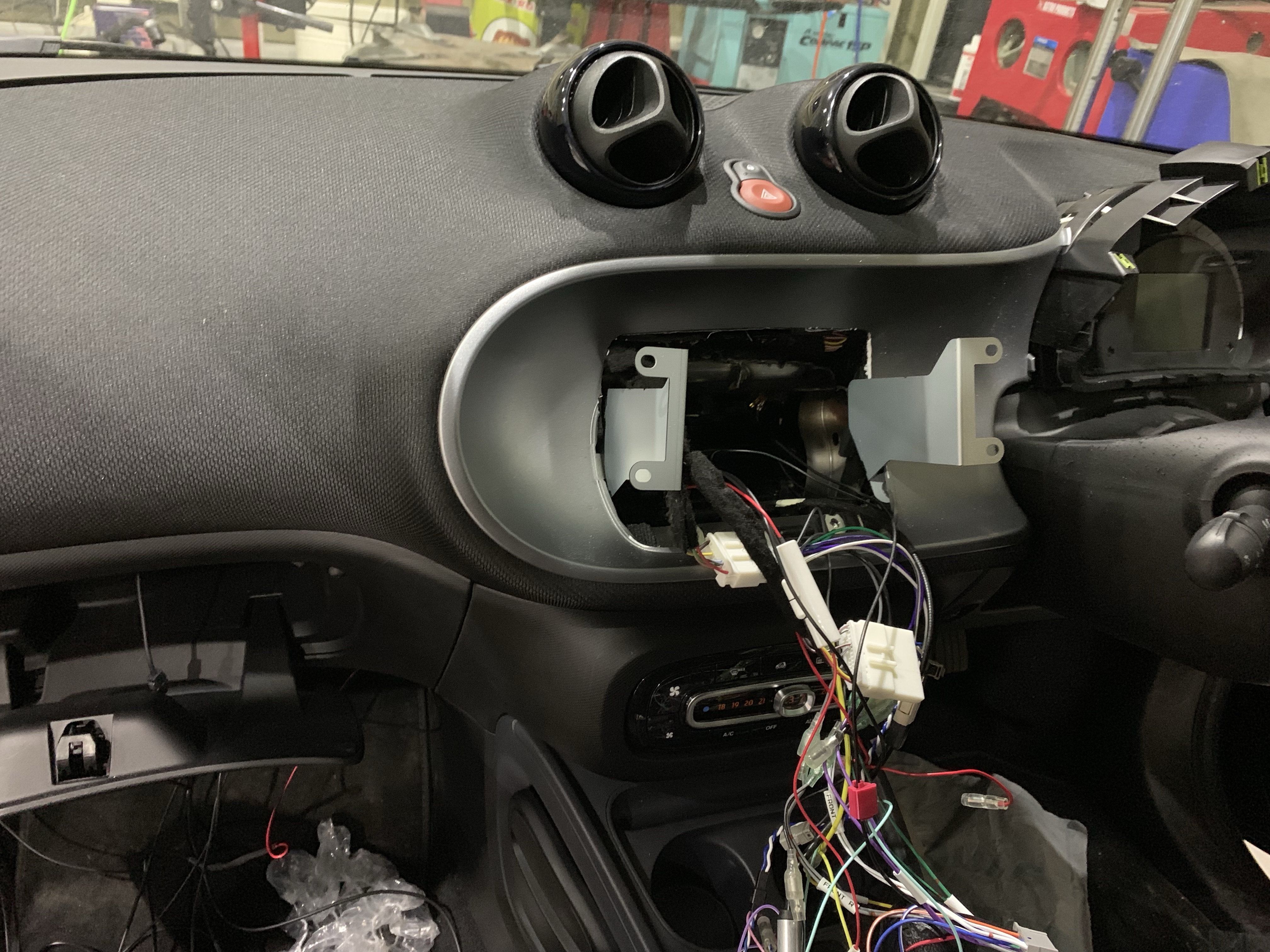 スマートの4人乗りモデル、スマートフォーフォーです。このクルマに社外ナビを付けるのが今回のミッションなのですが、一筋縄ではいきません。