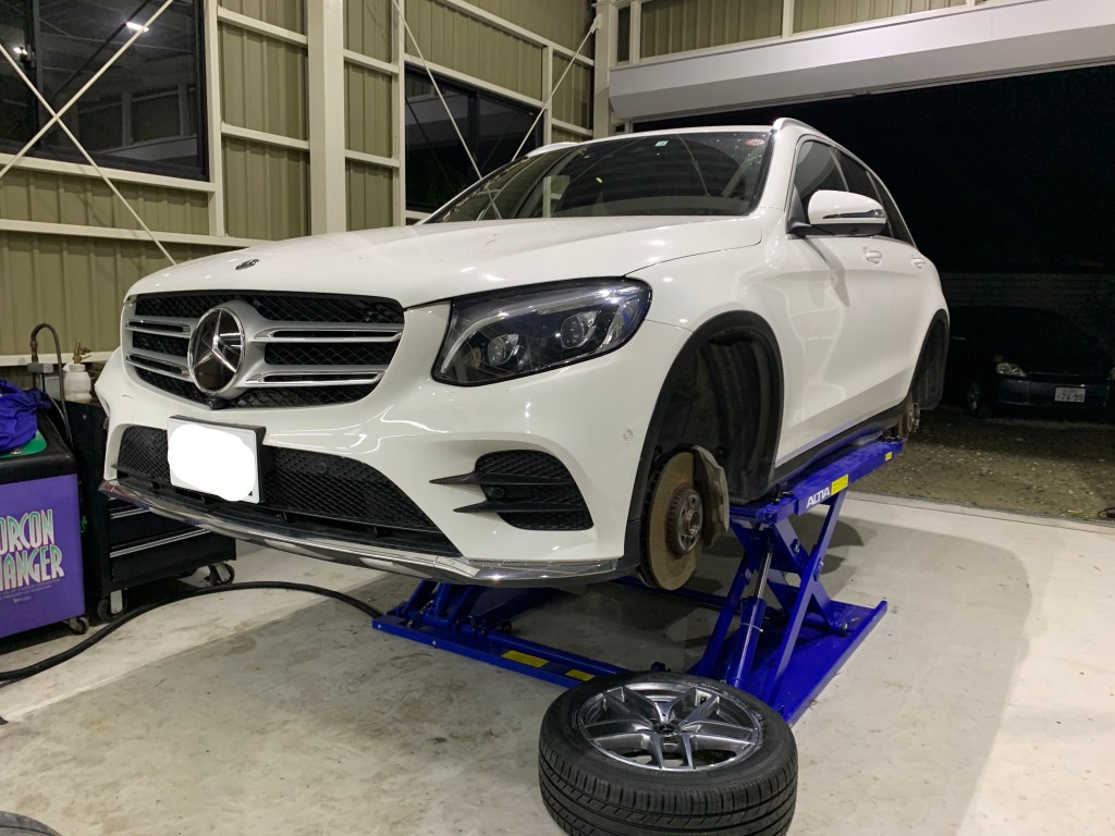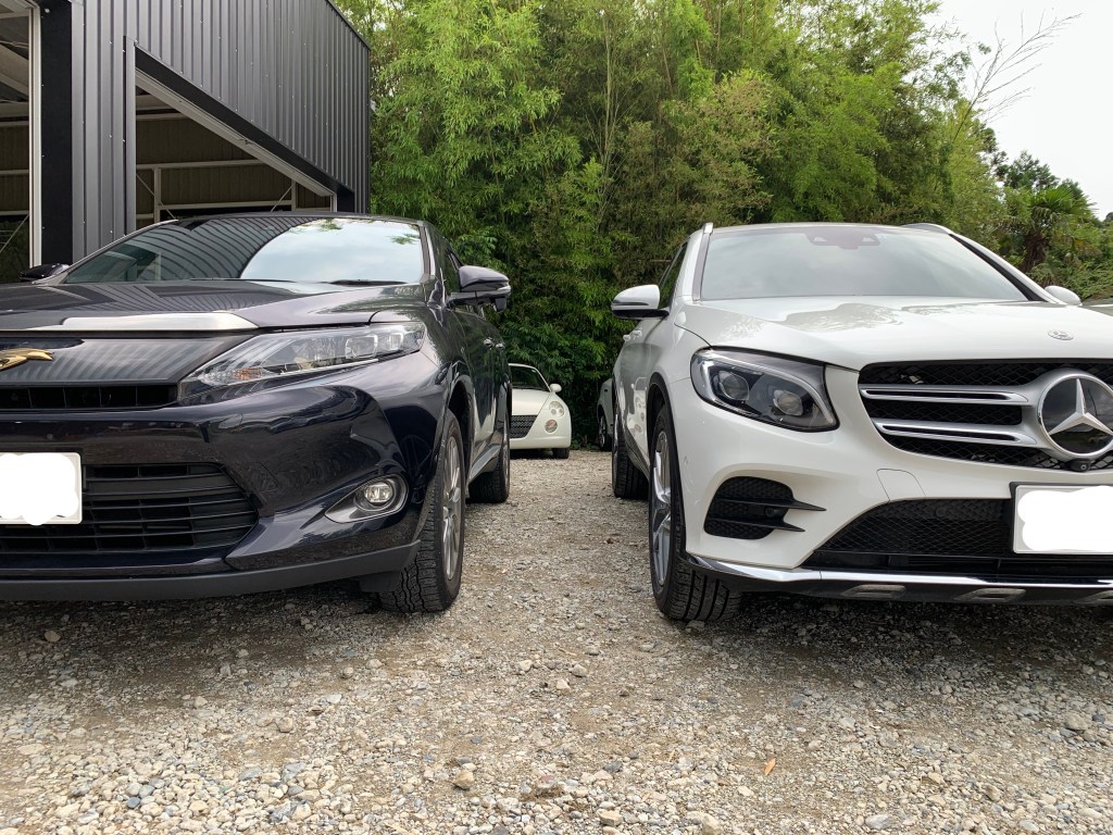 メルセデスベンツのGLCになります!左のハリアーは今までお客様が乗られていた車で、並べて写真を取らせて頂きました!