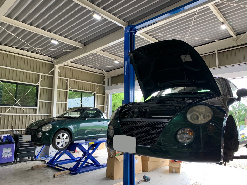 こちらは社外サスペンションとDスポマフラーの装着作業!