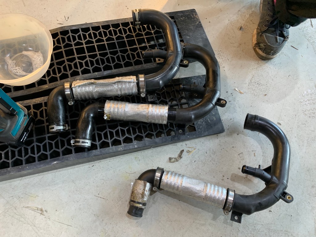 ブーストのかかりが悪かったりフロント部分のオイル汚れがひどい場合はここの割れを疑いましょう!今回はストック中古パイプがありましたのでこちらに交換いたしました。