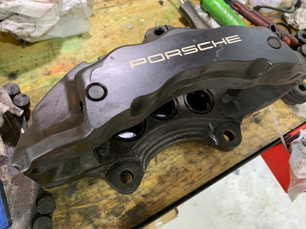 カイエンには強力なブレーキが備わっていまして、ブレンボ製の6ポットキャリパーがついております。6ポットですのでピストンが片側に6個、両側合わせて12個備わっていますのでオイルシール交換もなかなか時間のかかる作業になります。