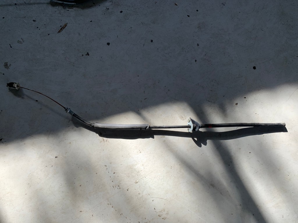 こちらがコペンのクラッチワイヤー本体になります。作業の過程でカットしてしまっていますが左側が車内側、右側がクラッチ側になります。大体の市販されている車のクラッチは油圧式の為、ワイヤー式のクラッチはある意味希少?過去の遺物でもありますが、どちらにも一長一短あります。