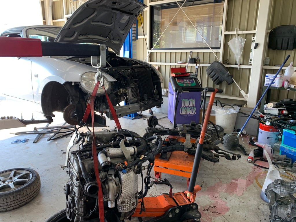 いつものようにサクッとエンジンとミッションを降ろします。幸いエンジンは絶好調な一台でしたので、今回はエンジン周りの整備はウォーターポンプやイグニッションコイルの取替に留めておいて、トランスミッションの整備に力を注ぎます。