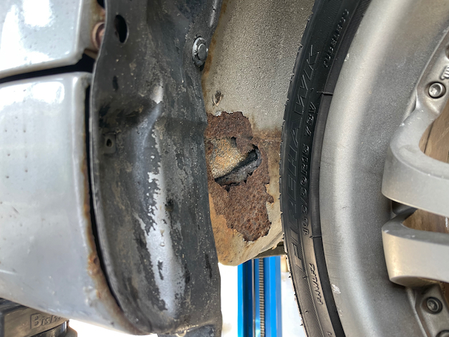 外装は綺麗に直してあったのですが、フロントタイヤハウス内に大穴が・・・・