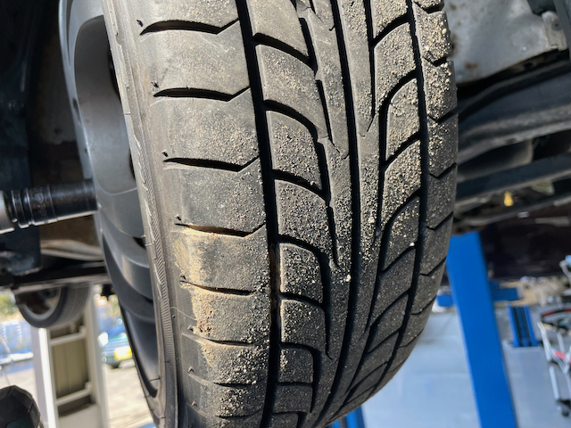 10万キロのMT車で取り急ぎ緊急性を要する故障はございませんでしたが、細かなところでタイヤのローテーション方向が間違って付いていたので、ここはその場で入れ替えて修正。