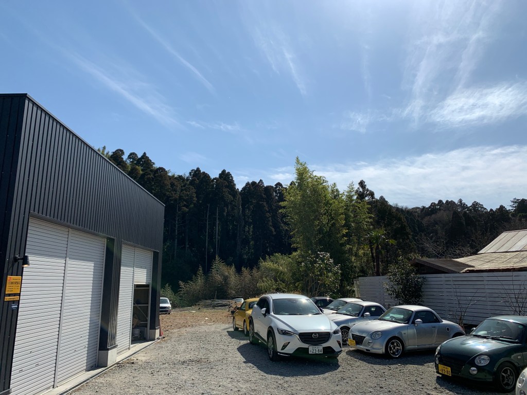 おかげ様で整備台数も増え、工場前だけではクルマが置ききれなくなったこともあり、前々から狙っていた隣地(竹林)の持ち主さんと交渉し、ひとまずお借りする事になりました。