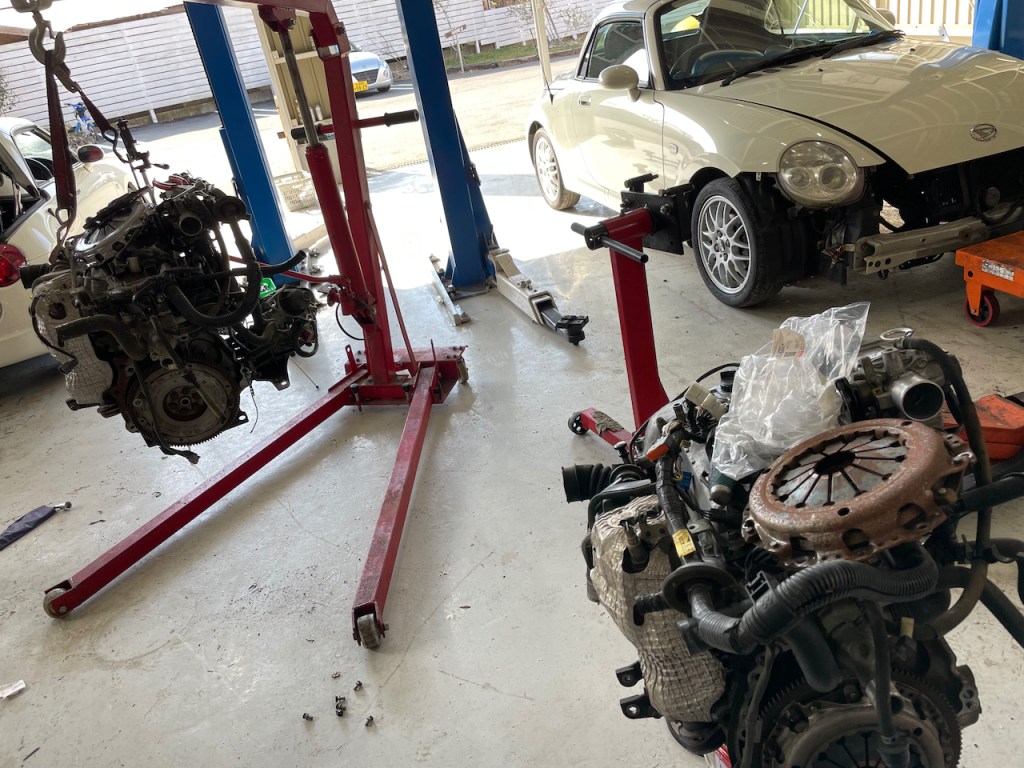 さて店舗の方はと言いますと、現在は中古エンジン載せ替え作業真っ最中です!