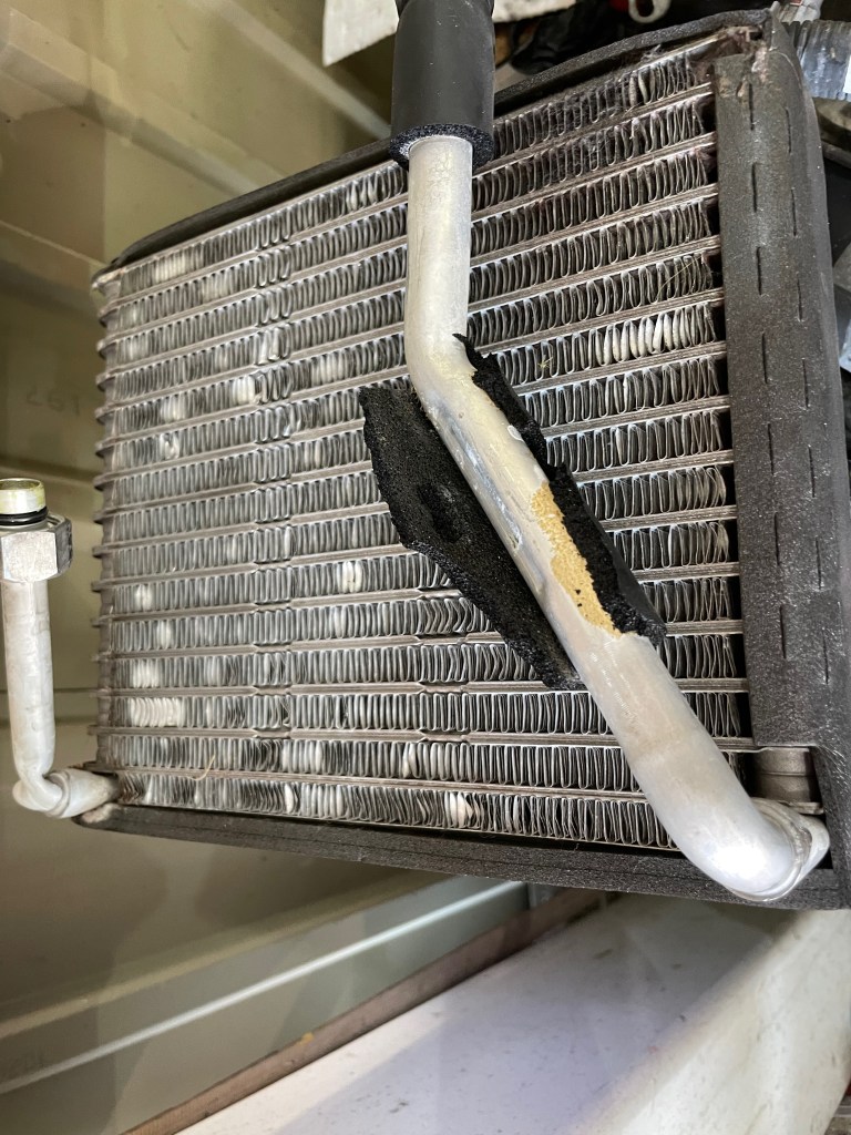 エバポレーター手前にはフィルターがついていてエバポレーター本体が汚れるのを防いでくれていますが、その目をかいくぐる雑菌や微粒子はありますのでエアコンの臭いは経年劣化する過程で防ぎ切るのは難しいとも言えます。