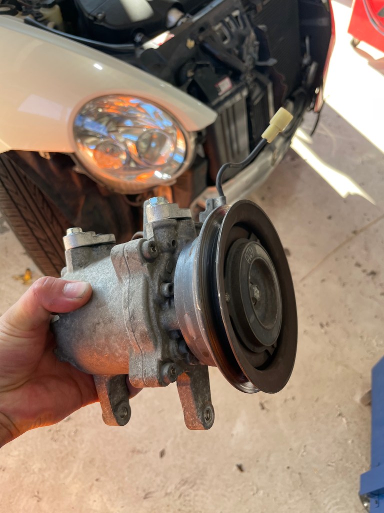 続いてのコペンさんはエアコンのコンプレッサー交換です。