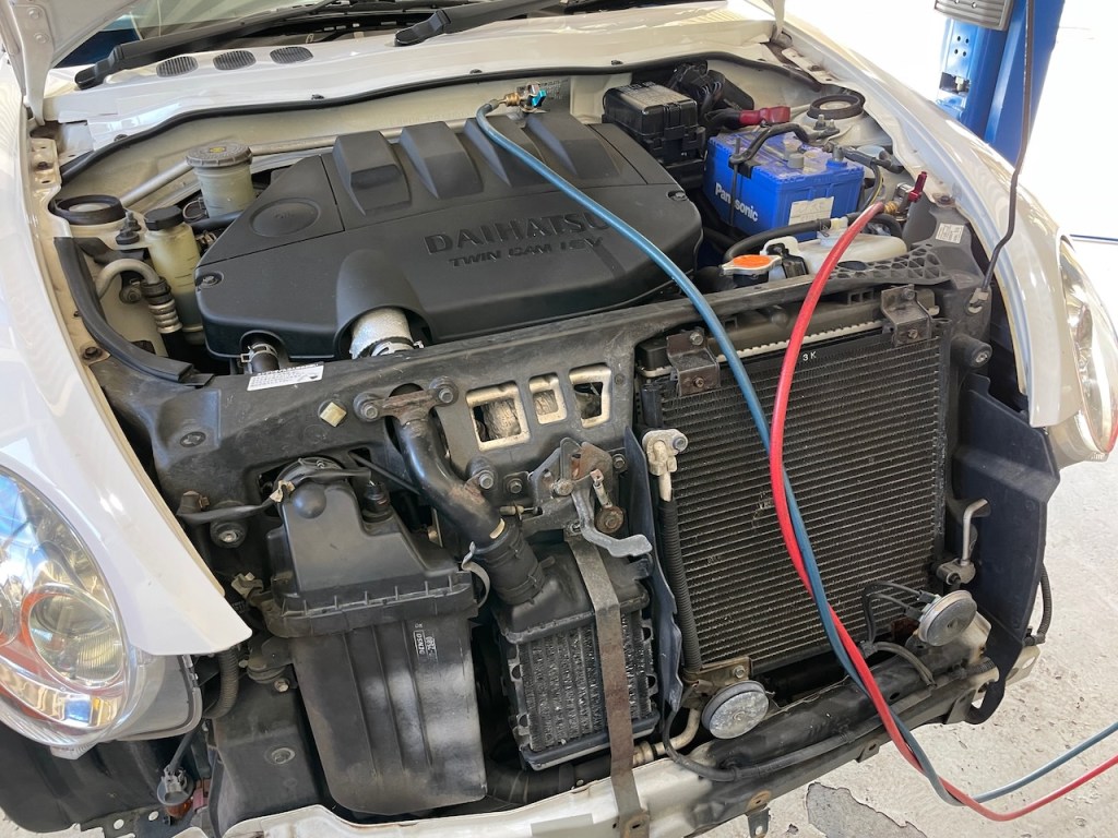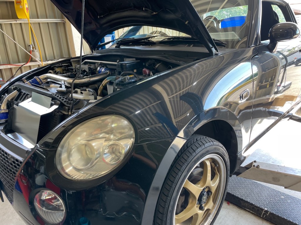 最後は先日オーバーヒートでご入庫したコペンさん、電動ファンモーターとラジエーター周りの部品を一新します。