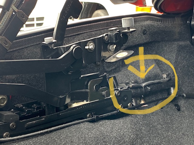 ご存知の通りコペンはトランク開いているとアクティブトップの動作を受け付けなくなるので、まずはトランクを閉めて上げないとオープンの修理に移ることができません。