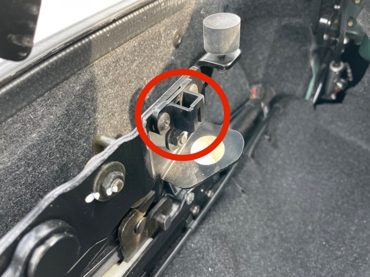 そもそもこのセンサーが何をやっているのかと言いますと、トランクパネル側にもセンサーがあって、両者がくっつくことでトランクが閉まったことを車両が認識する仕組みになっています。