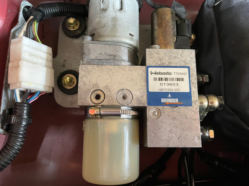 シリンダーも1セット用意してありましたので、左右のシリンダー交換と油圧ポンプ本体を交換させていただいて無事に動作するようになりました^^
