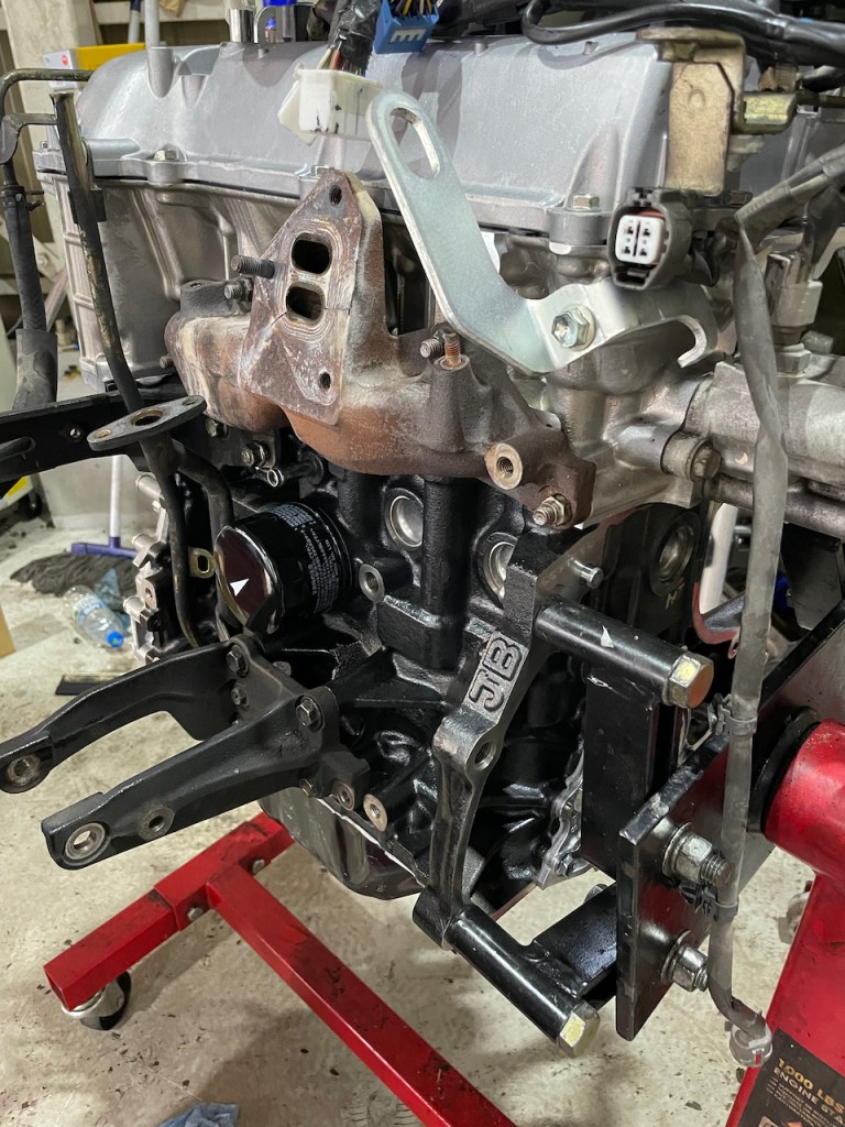 話は工場に戻りまして、こちらはコペンのJBエンジン。ピカピカです。新品のエンジンになります。