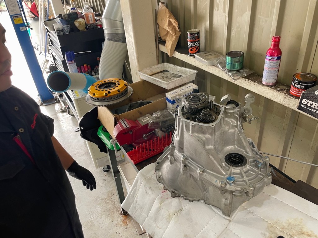 今回の400コペンのお客様はサーキット走行もされる方なので、MTを分解しているのはLSDを組み込む為です。もちろん同時にクラッチも強化しておきます。