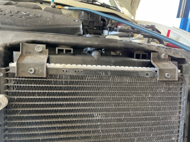 こちらはラジエーター交換作業中のコペンさん。コペンはラジエーターが弱い(正確には水温が高いのが問題)のでラジエーター交換作業は週に数台のペースで実施しています。