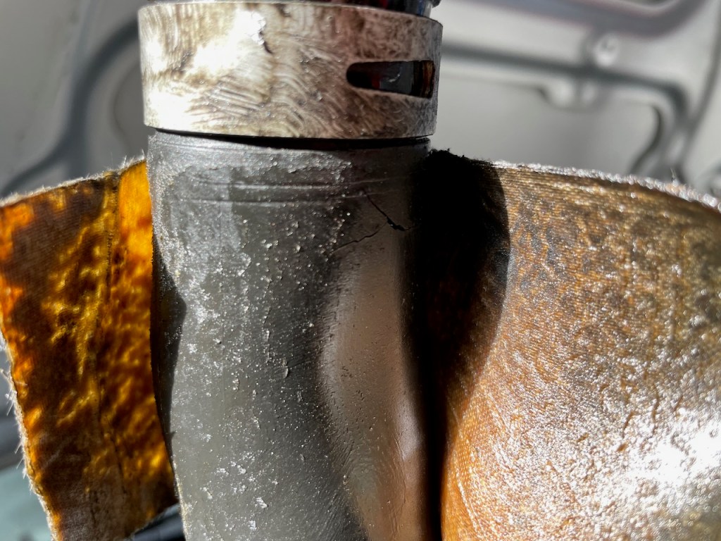 ついでにヘッドカバーを外す過程で割れやすいインテークパイプの裏側も点検できますのでここも要注意です。今回の車両もクラックが入っていましたので、ついでに交換します。