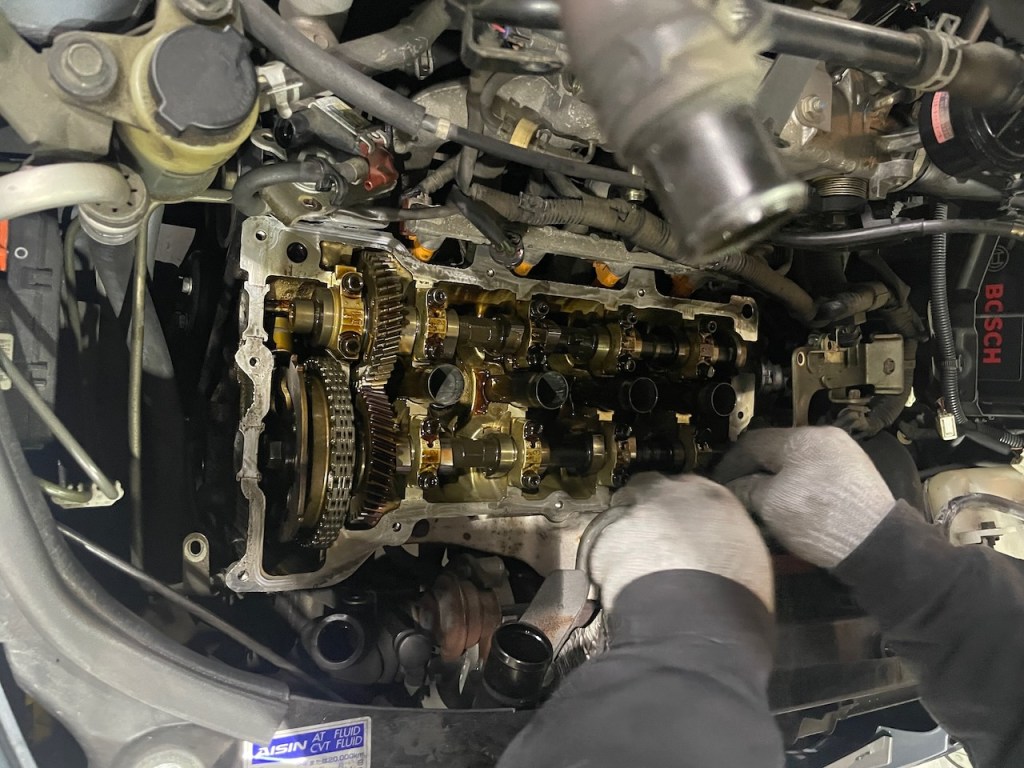具体的には汚れの着色状況やタイミングチェーンの伸びも直接点検できますので、ただのオイル漏れ修理だけでなく、点検の一部としても今後は力を入れていきたいと思います。
