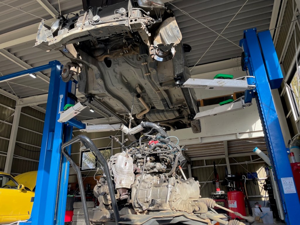 最後はエンジンオーバーホールの車両のエンジン降ろし+車検です。今回はATのコペンさんをメンテナンスします。整備前のテスト走行をしたところ、調子は良好でしたが、少しオイル下がり等の症状もみられましたので、しっかりと整備していきたいと思います。