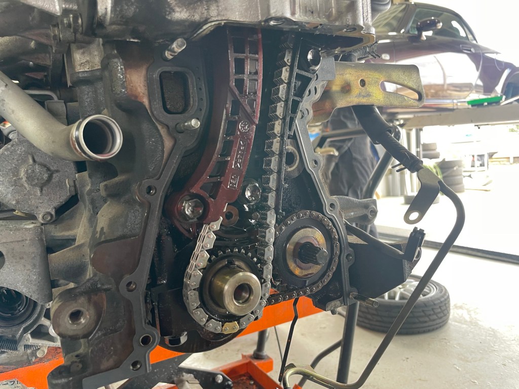 タイミングチェーンが伸びてしまっているとエンジンからジャラジャラと異音が出ることありますが、それだけでなくバルブタイミングがズレることでエンジンの調子も悪くなります。昨今の最新エンジンの様にバルブタイミング調整機能はついていないローテクなエンジンですので影響がすぐに出ますが、その分伸びている物を交換することで調子も良くなります。