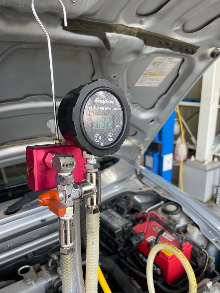 当店ではエンジンの冷却系統に負圧を発生させてその真空度合いや維持具合を見てオーバーヒートの深刻さ、エンジンに歪みがないかを点検します。