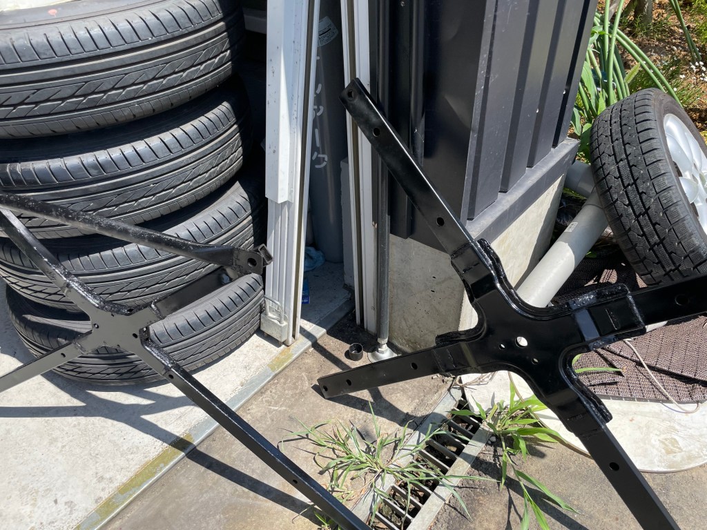 純正の補強バーも塗装。こちらは元々黒塗装仕上げですのでシャシブラックで仕上げます。