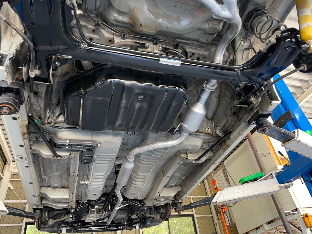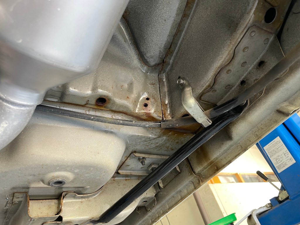 クリア塗装で仕上げることで今後の錆の進行具合も容易に点検できます。よく下廻りというと黒く塗装してしまいがちですが、塗ってしまうとその下のボディの状態が分かりにくくなりますので、当店ではクリア塗装をお勧めしております。