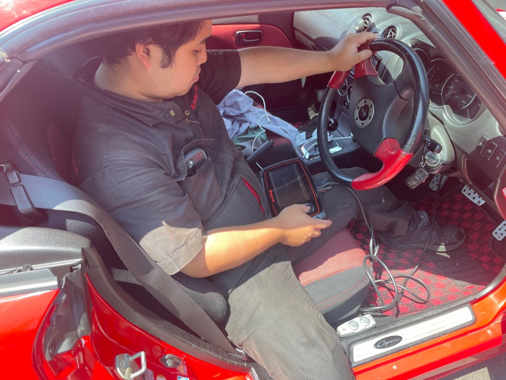 群馬県からご来店ありがとうございました!診断機を用いてアクティブトップの複雑な動きを可能にしているセンサー類をチェックしております。