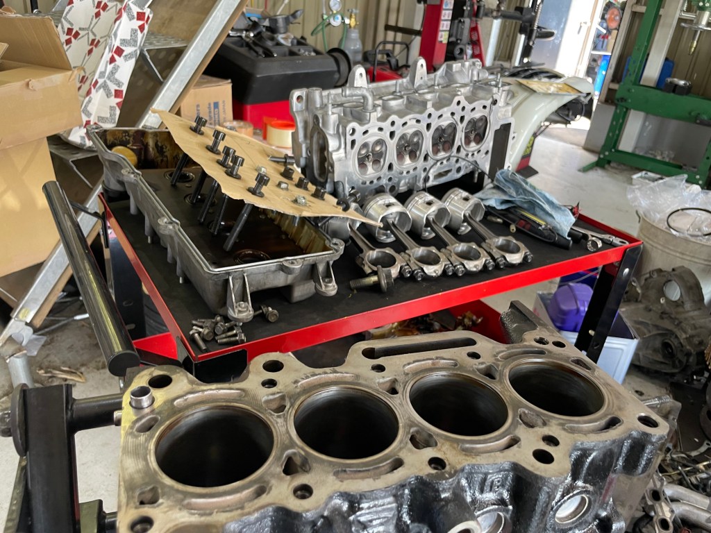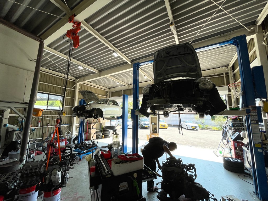工場の片隅には作業中のエンジンが何台もありまして、合間を見て作業を進めております。