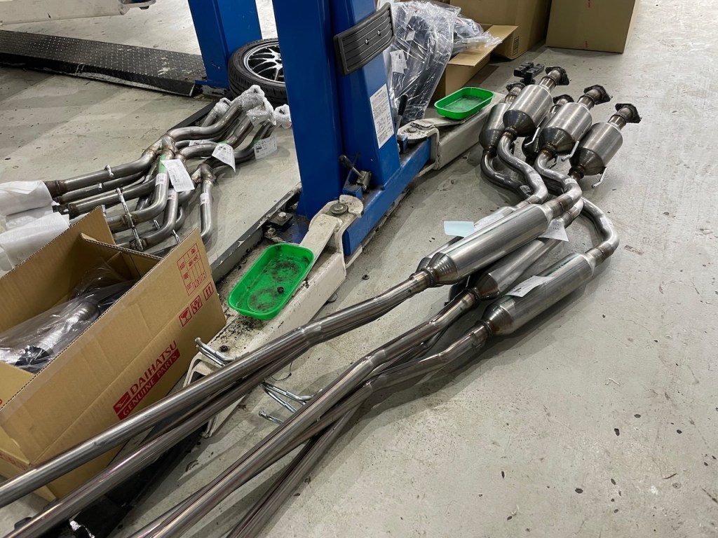 生産ラインのように純正マフラーが大量に入荷。