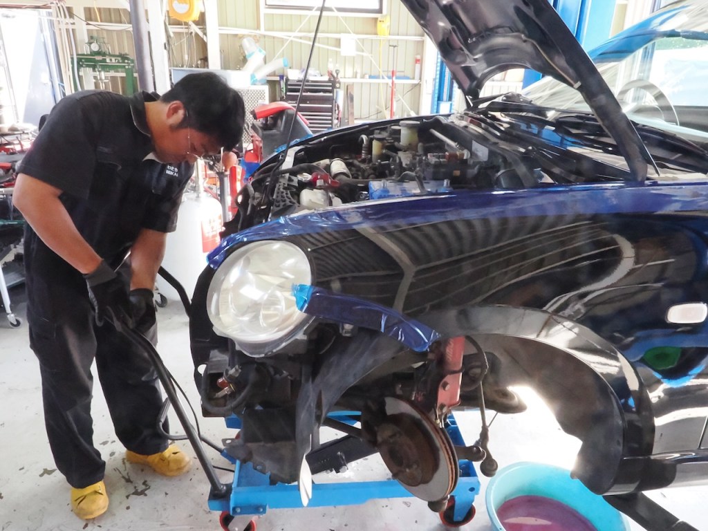 今月は8台エンジン下ろしの予定が入っておりますので、手際よくいつも通りエンジンを降ろしていきます。