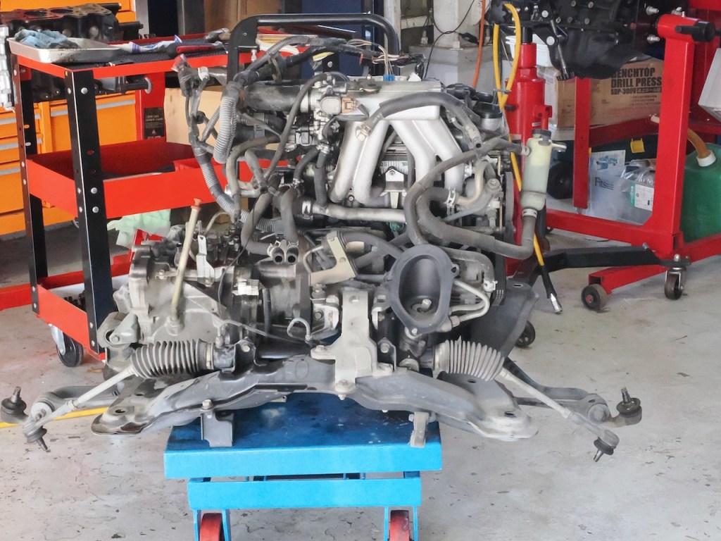 この後補器類を取り外してエンジン本体をメンテナンス。その後元に戻して車両にドッキングいたします。