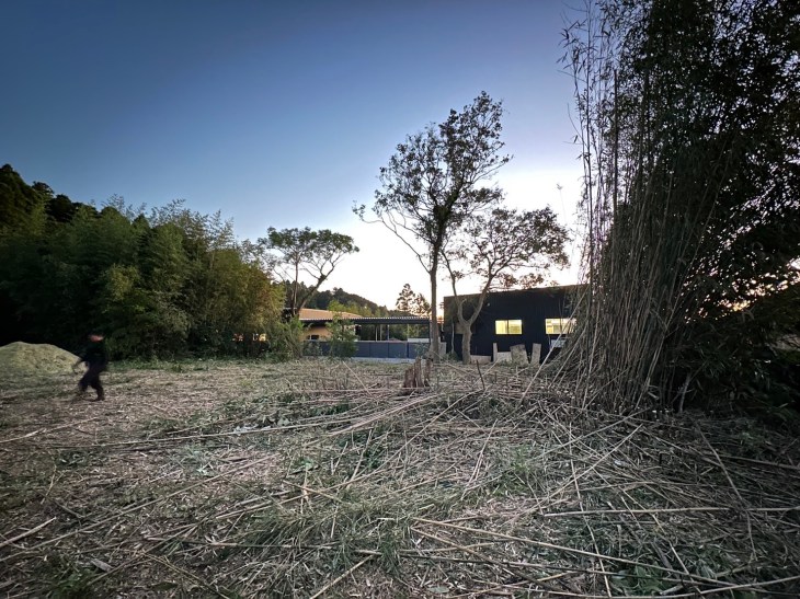 中古車販売に力を入れるべく隣の竹林を賃貸し駐車場作りも。