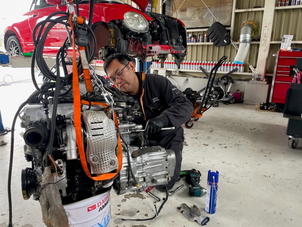 今回はエンジンだけでなくトータルでのリフレッシュをしておりますので、走行距離による劣化が見られる部分はできるだけ整備していきます。