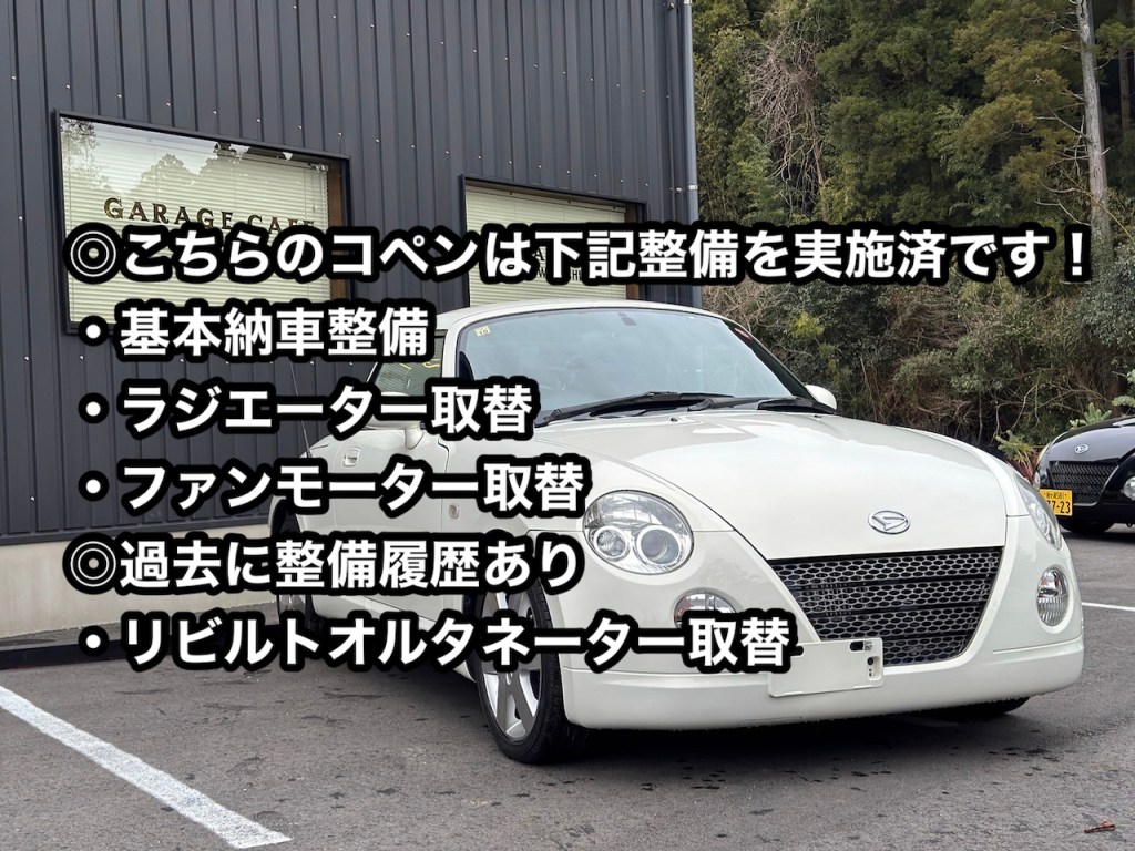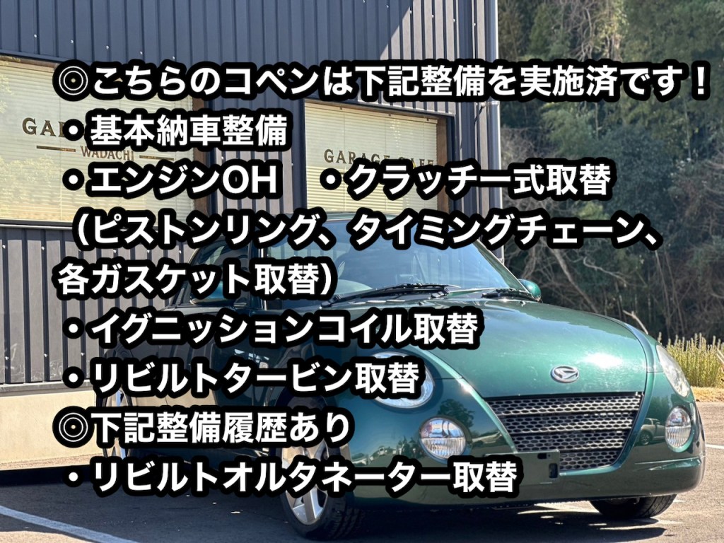 続いてはこちらの緑のコペン。MTの車両になります。走行距離は8万キロほど。