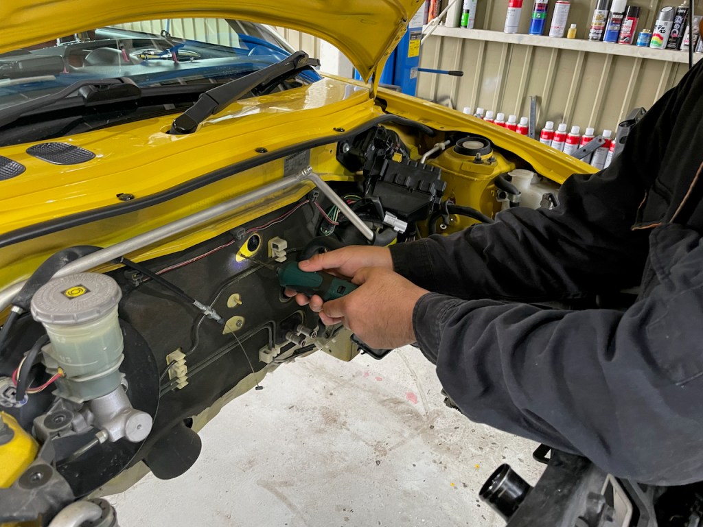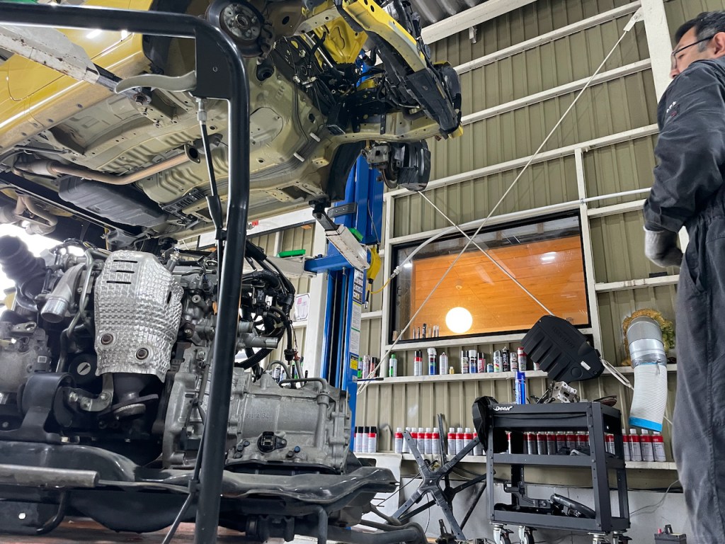 もちろんそのままMTをつけて載せて終わりというわけにはいきませんので、車体側に加工を施していきます。