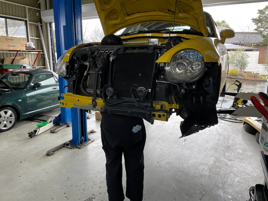 今回MT化するのは手前の黄色コペンさん。走行距離も少なめの程度良好のアルティメットエディションの車体です。