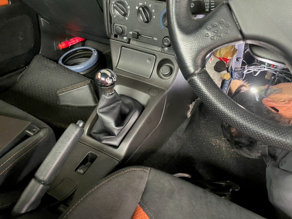 シフト周りは既にMT化が完了しており、純正のMTコペンを全く同じ仕上がりとなっております。