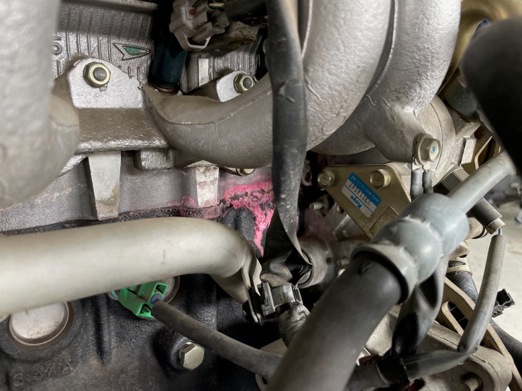 コペンのエンジンは丈夫ですので、本体が壊れてしまうことは少なく、大体のコペンはリフレッシュの為にエンジンを降ろすケースが多いのですが、今回のコペンはヘッドとブロックの隙間から冷却水が漏れ出してしまっているので、その修理でエンジンを降ろしました。