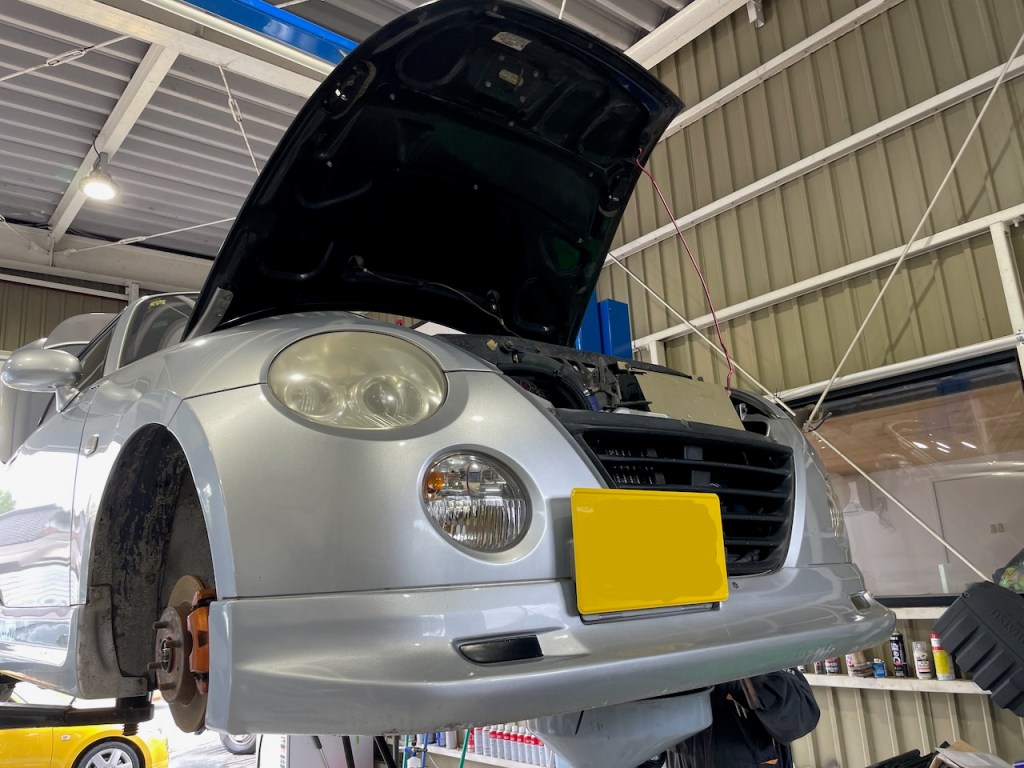こちらのコペンは当店のお手軽プラン+車検整備作業中です。