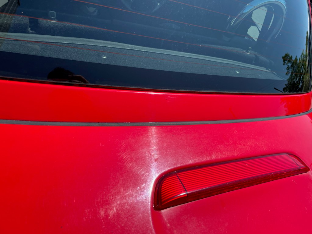 基本的に雨漏りの修理は調整で直すケースが多いです。今回もトランクとバックパネルに隙間ができていて、そこから強い雨だと雨水が侵入していましたのでバックパネルの位置を微調整して隙間を埋めて修理しました。