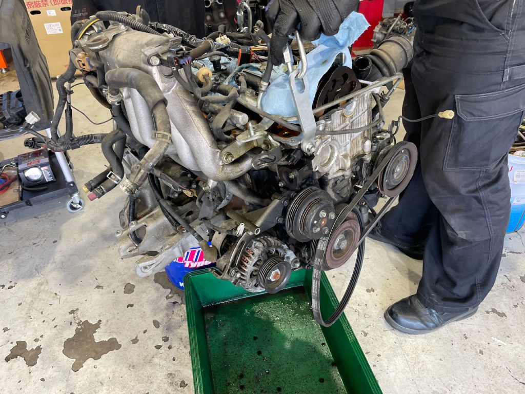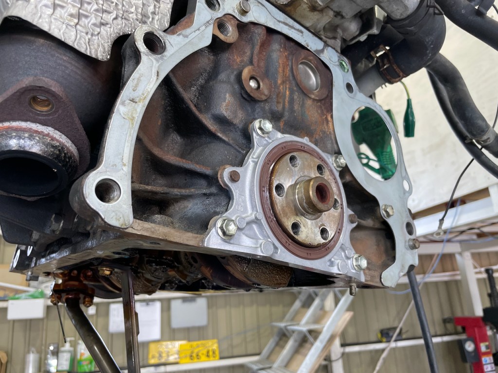 そのほかエンジンマウントやウォーターポンプ等エンジンが車両に乗っていると作業しにくい箇所をまとめて実施しておきます。