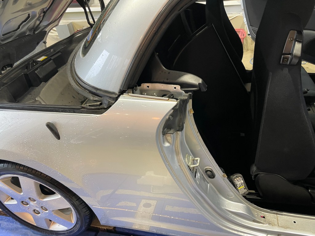 最後にご紹介するのはコペン特有の不具合でもある三角窓周りの修理です。