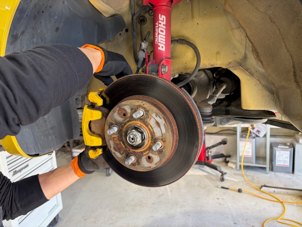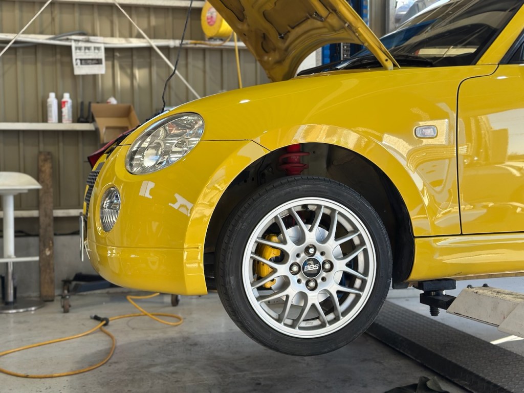 こちらはブレーキパッド&ローター交換作業の黄色コペンさん。