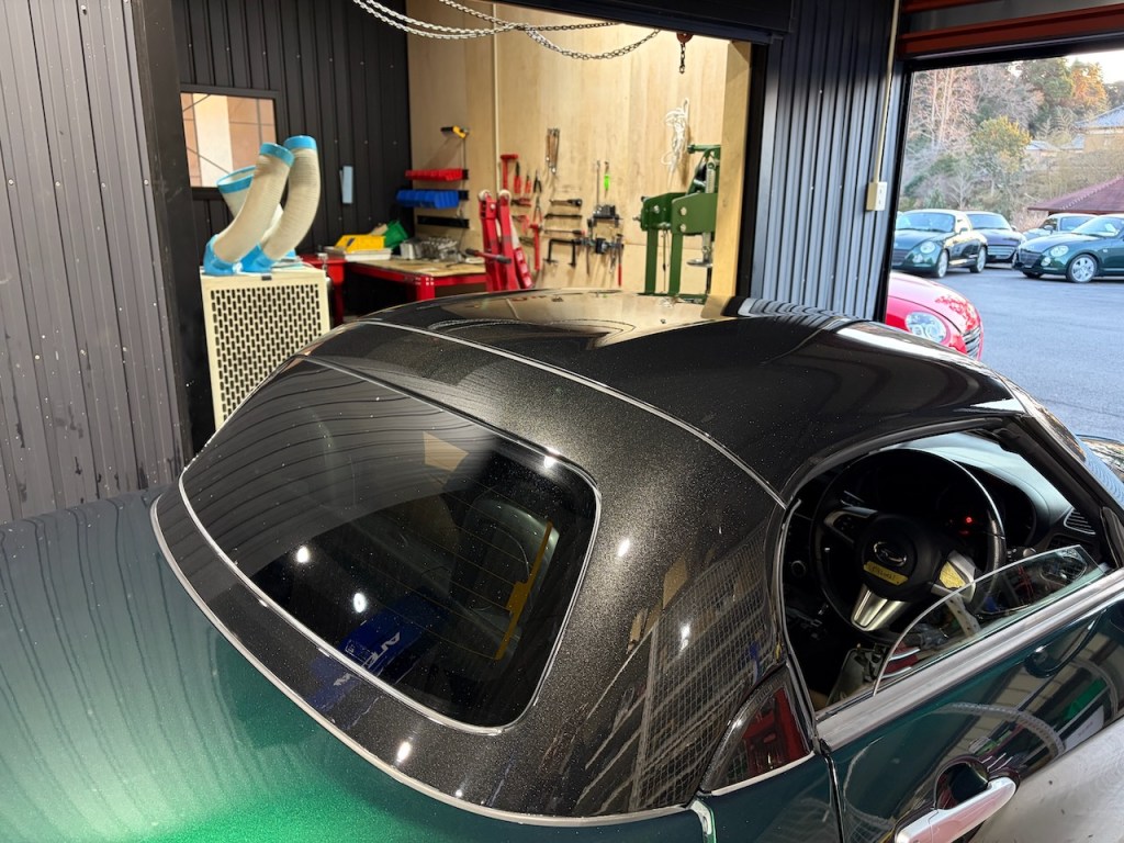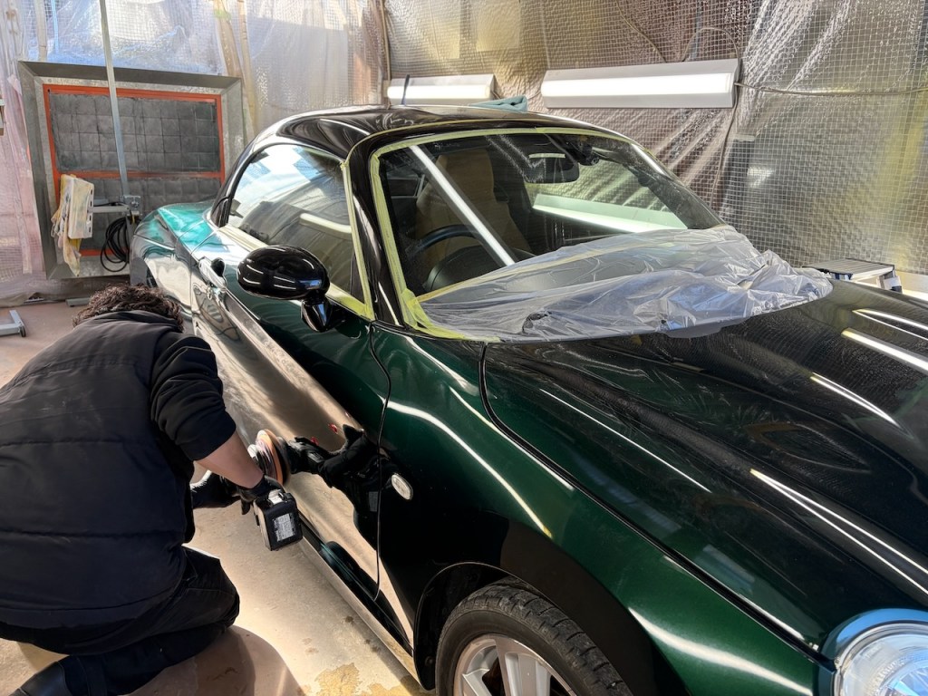 先日ルーフを塗装したセロですが仕上げで磨き作業を実施。
