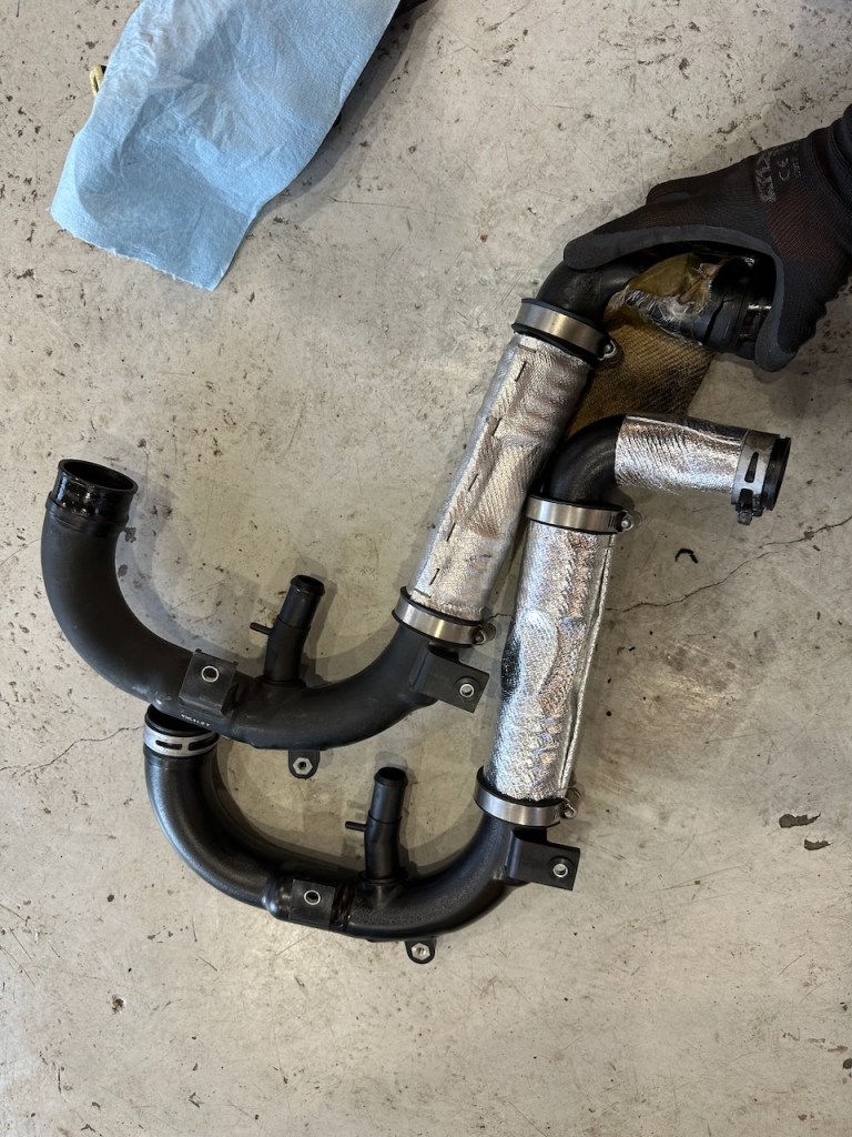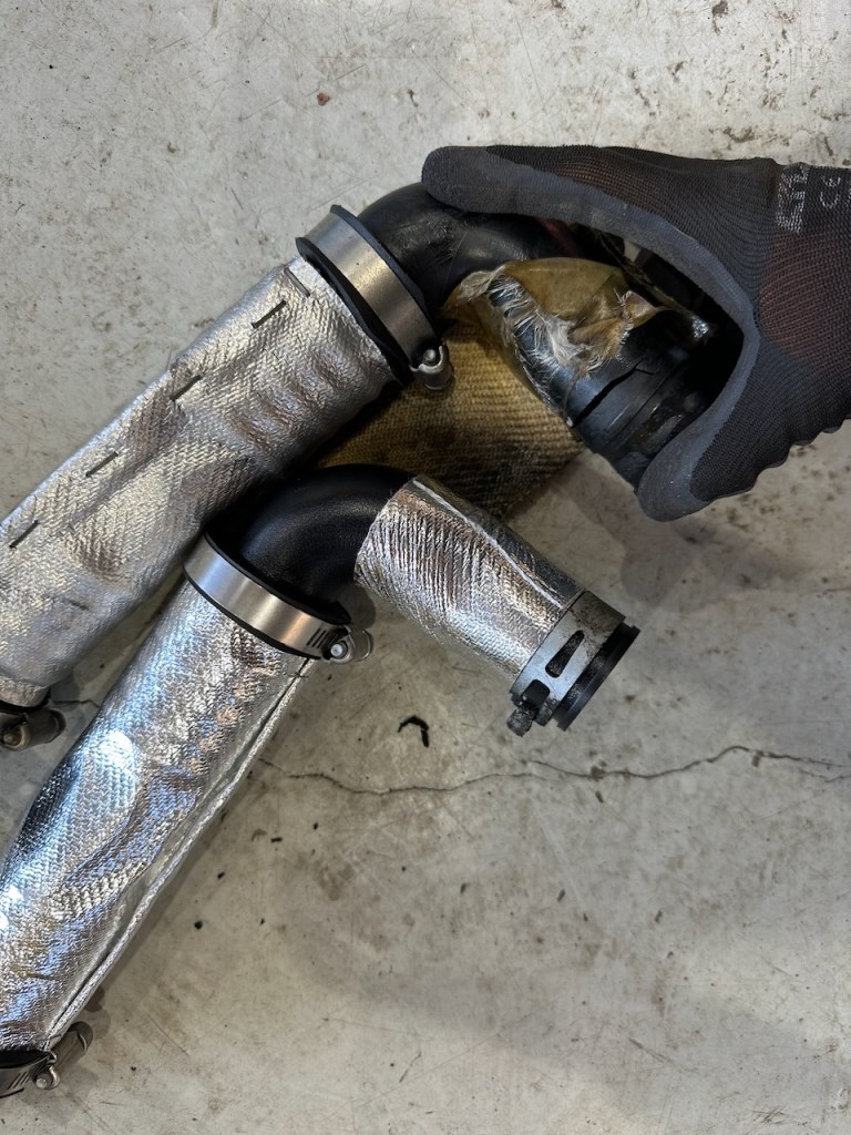 ブレーキ作業後試運転をしたところ、加速感に違和感がありましたのでインテークパイプ割れを疑って見てみたところ、案の定パイプにクラックが入っておりました。